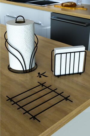 MNZ-خدمة عرض مجموعة حاملة المناشف محفظة النابكين Trivet أسود ملء من الفولاذ المقاوم للصدأ الوهمي مجموعة من 3 مطبخ مزخرفة المعدن