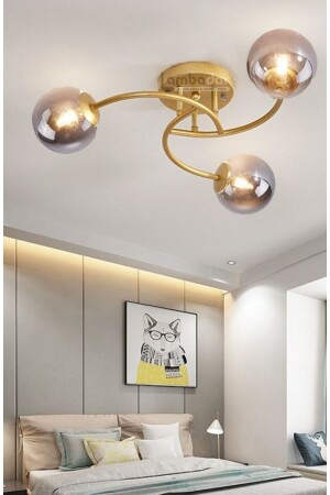 MNZ-الفخامة النموذج Plafonier ثلاثي الذهب عصرية مضيئة الزجاج المدخن LMBDR35092