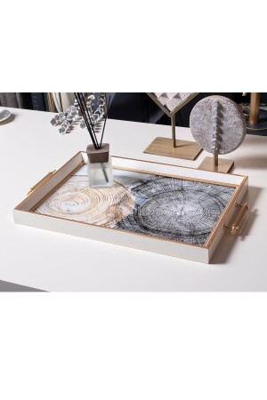 MNZ-Natural Calacatta Marble Round Tray مع معقب ذهبية MRM0128