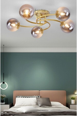 Pare Model Modern Spor Siyah 4'lu Glop Füme Camlı Avize