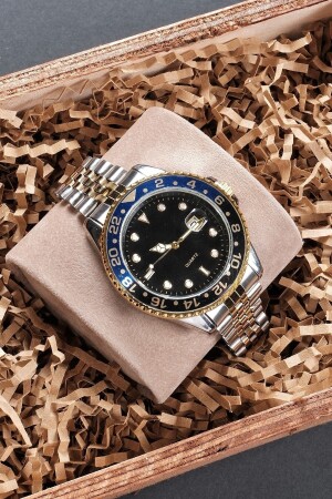 MNZ-الفضة الذهبية المقطورة الصلبة القضية الصلبة الخيط التصميم الأسلوب التقويم ساعة الذراع للرجال pr19588