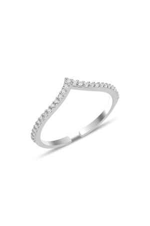 Kadın Gümüş Rengi Tek Sıra Zirkon Taşlı Tamtur Gümüş Yüzük SGTL8766 13