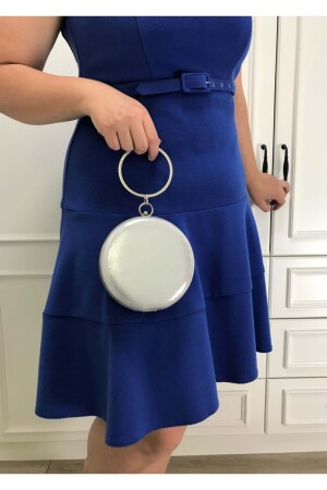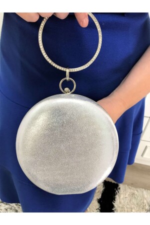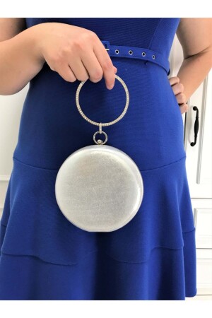 Kadın Yuvarlak Gümüş Taşlı Bilezik Aksesuarlı Abiye Clutch Portföy Çantası