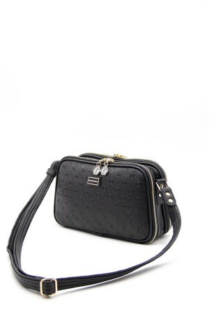 Kadın Siyah Çapraz Ayarlı Askılı Klinkır Kumaş Postacı Omuz Çantası