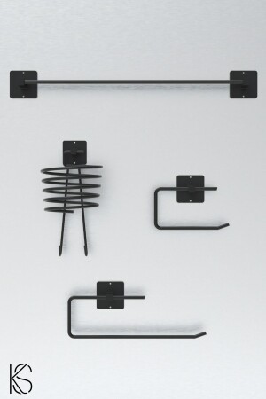 متجر MNZ-Kılınç ملصق 4 قطع أسود المفروض الجفاف شنجر، رف المطبخ، WC حامل ورق المراحيض، رول حامل الحمام، مجموعة الحمام.
