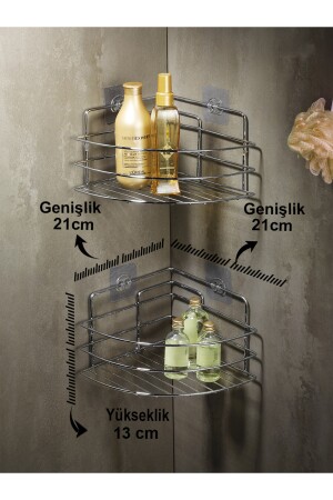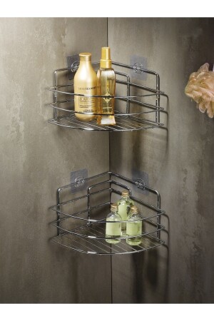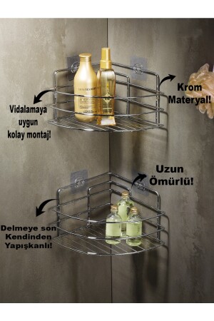 MNZ-الملصق الحمام زاوية منظمة شامبو حامل غرف الاستحمام 2 قطع كروم Tk-01 LAISYHOME-038