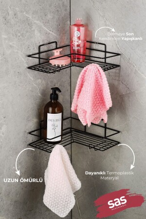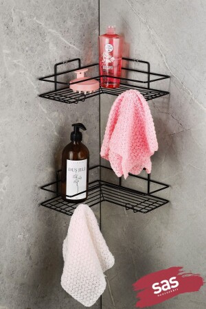 MNZ-الملصق على مدى الحياة لا ينفصل الحمام رصيف الزاوية المرتبط الحمام شامبو حامل الرف سوداء 2401241100