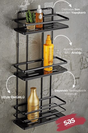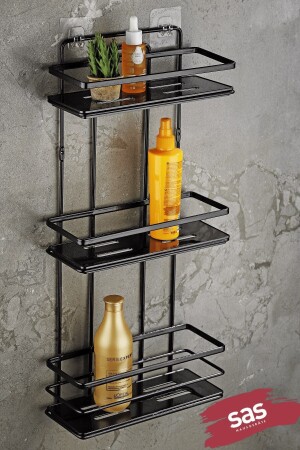MNZ-الملصق على مدى الحياة من البلورات المقاومة للصدأ رف الحمام منظمة شامبو حامل الأسود Lş-03 Ss