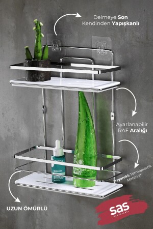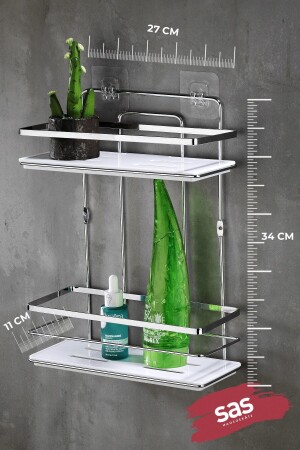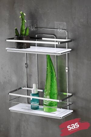 TEKNOTEL YAPIŞKANLI KANCALI 2 ADET BANYO RAFI KROM ST242H