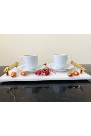 MNZ-Natural Calacatta Marble Round Tray مع معقب ذهبية MRM0128