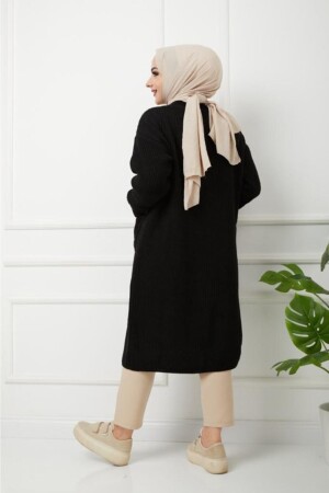 Kadın Siyah Penye Italyan Reglan Oval Etek Uzun Kol Esnek Uzun Hırka & Tesettür Hırka