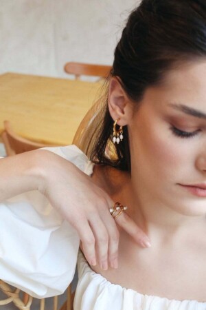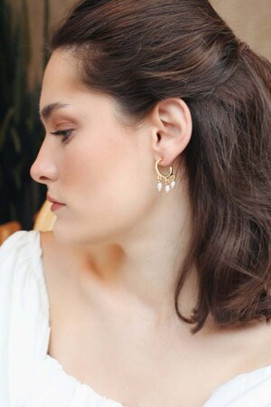 14 Ayar Altın Kadın Taşlı Damla Inci Küpe