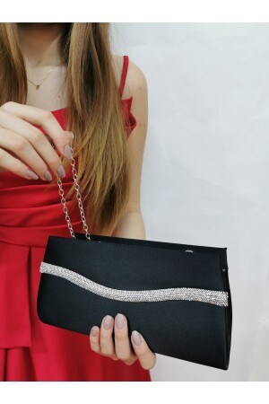 Siyah Kadın Taşlı Ve Sade Özel Zincir Ve Kolçaklı Abiye Çanta Bg1175-310-0011