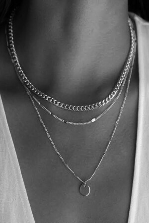 MNZ-النساء سلاسل طبقاتية عنق سيكين الفضة لون