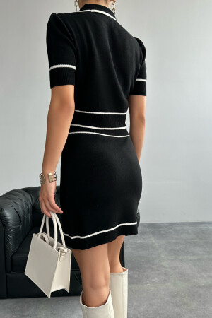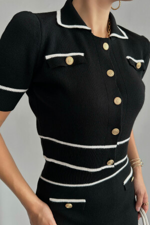 MNZ-النساء سوداء بولو عنق اللؤلؤة زر قميص صغير ملابس ثنائية ITKM001