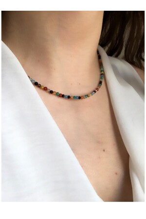 MNZ-النساء 925 سدرلينغ الفضة براءة اختراع ألوان خضراء الأجيت حلقة عنق حجر طبيعي (2mm) DKA567