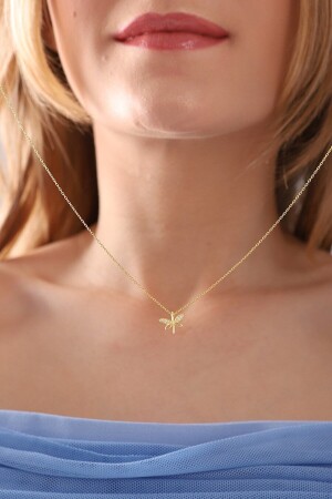 MNZ-النساء 925 سدرلينغ الفضة سلسلة الذهب مزودة من النموذج الدراغونفلي القليل العنق bilsen3