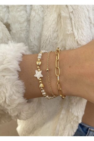 MNZ-أم من نجوم اللؤلؤ 3 قطع سلسلة ذهبية زنادة نسائية
