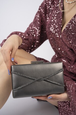 Kadın Yuvarlak Gümüş Taşlı Bilezik Aksesuarlı Abiye Clutch Portföy Çantası