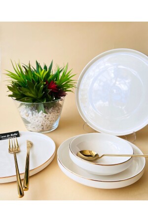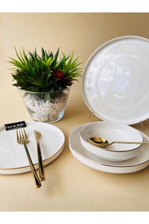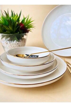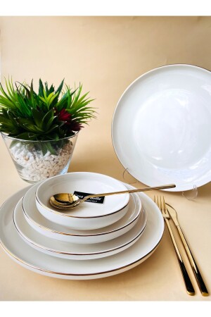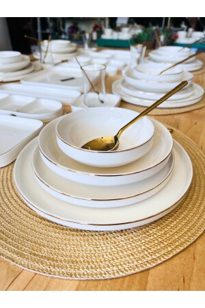 MNZ-48 PIECES PORCELAIN DINNER SET FOR 12 PEOPLE - WHITE GOLD مادة: العظام الجديدة 12 طاولات العشاء 22 سم 12 طاولات الخ
