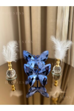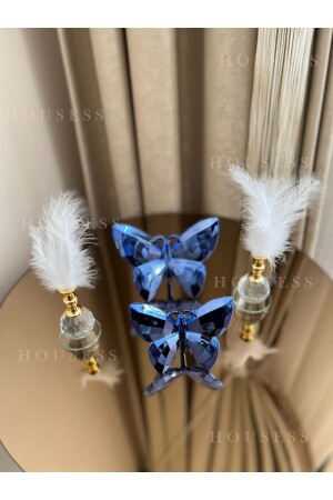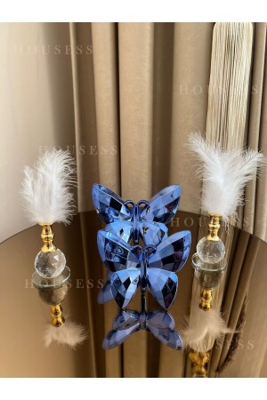 MNZ-تزهة الفراشة الزرقاء و 2 الذهب ريش حامل زينة الزينة HSS-TPSKLBKS13