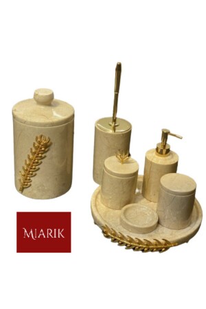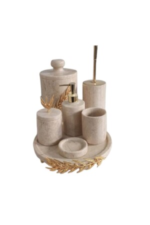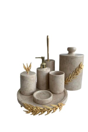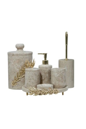 MNZ-تزيين بيج الرخام الذهبية زيتون فرع التفاصيل 7 قطع حمام مجموعة BEJDALBANYO7