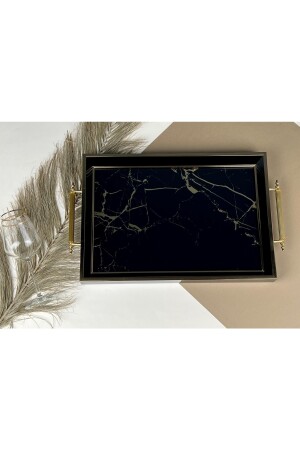 3 Lü (51- 37- 30 CM) Ahşap Kulplu Metal Tepsi Çay Tepsisi Kahve Tepsisi Sunum Tepsi Seti