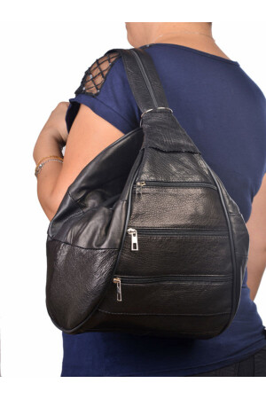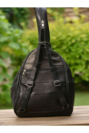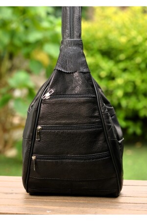 ملابس ومهمة MNZ معاً: حقيبة ظهر نسائية سوداء من جلد أصيل ومثلة من كيس الكتف - هذه الحقيبة الظهر ومثلة الكتف المصممة خصيص