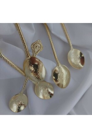 Gold Parlak Çay Kaşık Seti 6 Adet, Kutulu, 18-10 Paslanmaz Çelik 6 Kişilik Çay Kaşığı Seti Titanyum Gold Çay Kaşığı 6 Adet