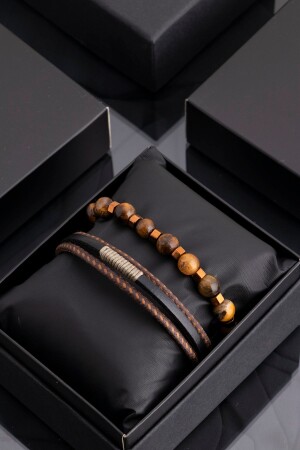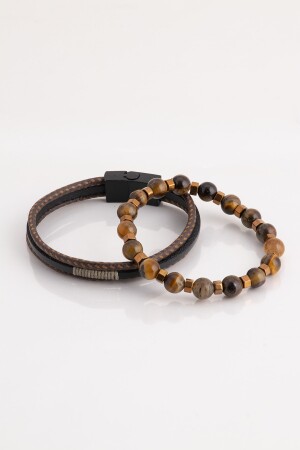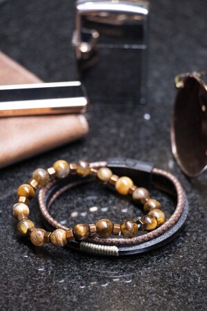 MNZ-حبل تفاصيل الأسود البني الجلد الأصلي والنمر العين الحجر الطبيعي المزج الرجال المجموعة 019 SRT476-019