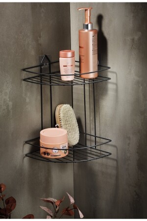 MNZ-مؤخرة الحياة لاصق جدار 2 طبقة حمام مسطح شامبو حامل منظمة أسود Tş-02 PRA-3506556-3401
