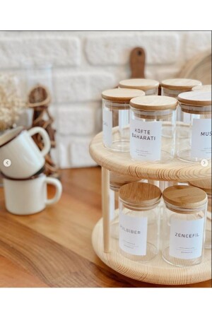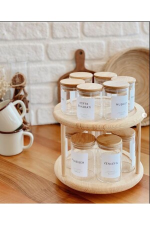 12'li Kapağı Kendinden Kaşıklı Ve Etiketli Baharatlık Seti 300 ml Gold Etiketli Cam Baharat Takımı
