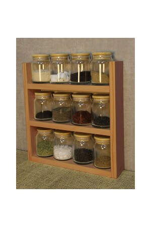 12'li Kapağı Kendinden Kaşıklı Ve Etiketli Baharatlık Seti 300 ml Gold Etiketli Cam Baharat Takımı