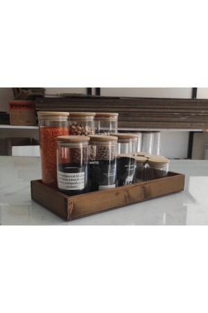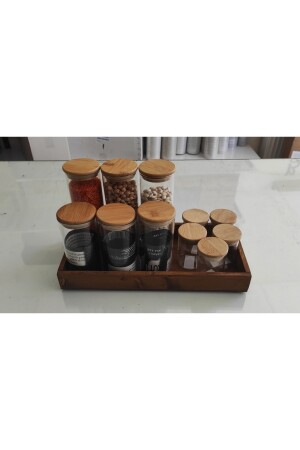 12'li Kapağı Kendinden Kaşıklı Ve Etiketli Baharatlık Seti 300 ml Gold Etiketli Cam Baharat Takımı