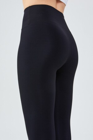 Süper Kalite Siyah Penye Pamuklu Likralı Diz Altı Kapri Tayt Yüksek Bel