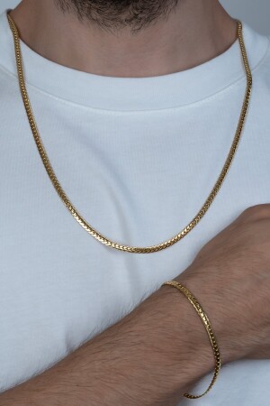 MNZ-ذهب مزقة سطح الثعبان الفولاذة اليونيسكس عنق و سوار مجموعة Eck37s MDL-ECK37S