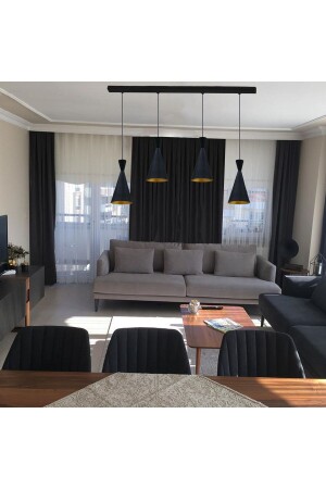 Pare Model Modern Spor Siyah 4'lu Glop Füme Camlı Avize