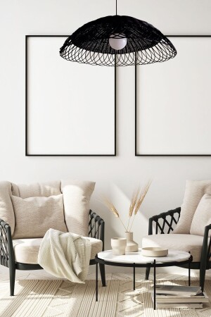 MNZ-راتان، بامبو، ويكر مصباح معلق شمعة سوداء قطر: 50 سم