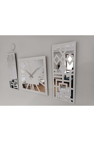 MNZ-رومانية رقمية تصميم حديث وأقليص الأبيض MDF الفضة لون مرآة Plexi الجدار ساعة مجموعة من 3