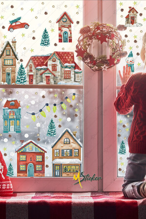 MNZ-سنة جديدة المدينة الثلجية سنة جديدة غرفة الأطفال الملصقات مجموعة، زينة عيد الميلاد سنة جديدة الشتاء مفهوم k590