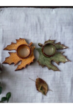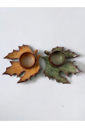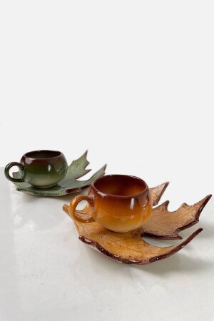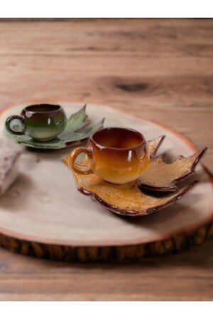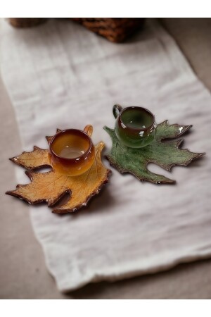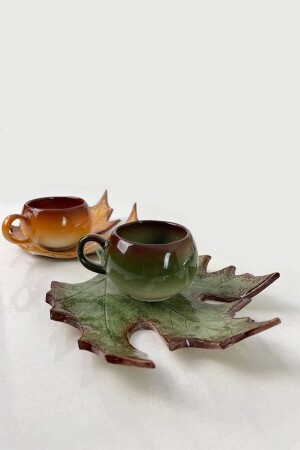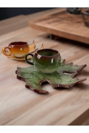 MNZ-طائرة ديكورية كوب قهوة شاي مصورة ورقة شجرة في الألوان الخضراء والحمراء لـ 2 أشخاص ARTCNR2