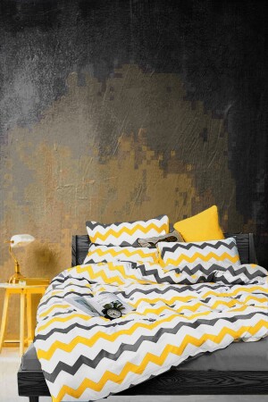 قماش طبيعي من القطن المزدوج غطاء ملابس مع زرقة زيغزاج 4 وسادة. مصنوع من 100% القطن والقوة المضادة (57 خيط / سم2) الألي