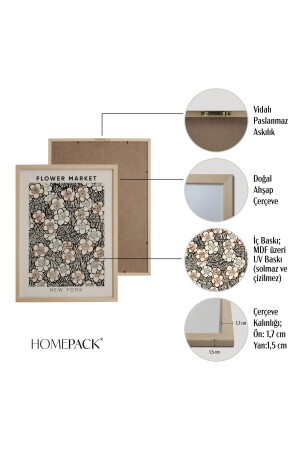 تتكون من 5 قطع من اللوحات. 2 قطع من 30x40 سم - 3 قطع من 21x30 سم. مصنوعة من إطار خشب طبيعي صلب. داخل الطاولة مطبوعة بالأشعة فوق