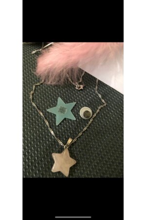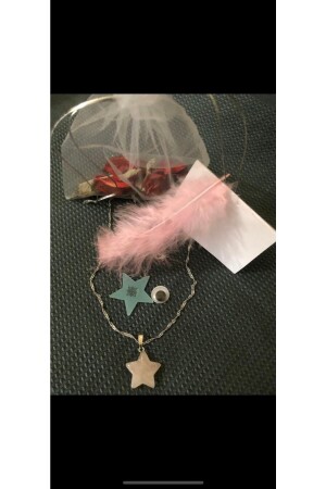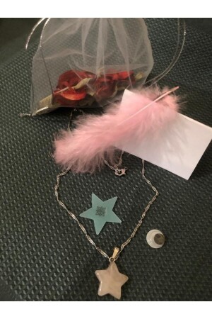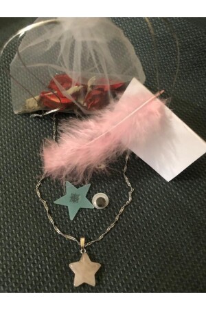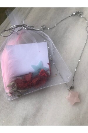 قلادة على شكل نجم مصنوعة من حجارة كوارز وردي خاصة، رمز الحب، مع سلسلة خاصة، تم تصميمها لك كهدية.