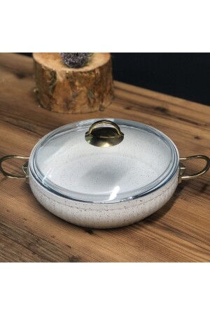 MNZ-غرانيت كاسيرول 30 سم 6 لترات طلق الأرز كاسيرول بروت غير ملصق ذهب أبيض 070255