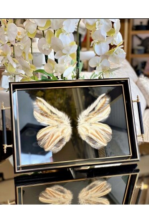 Lüx Kare Kelebek Aksesuarlı Paslanmaz Çelik 6’lı Gümüş Kahve, Çay, Dekoratif Sunum Servis Tepsisi MZKBK667