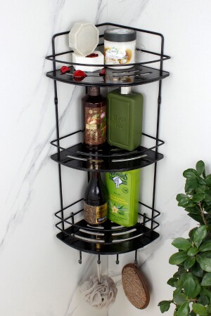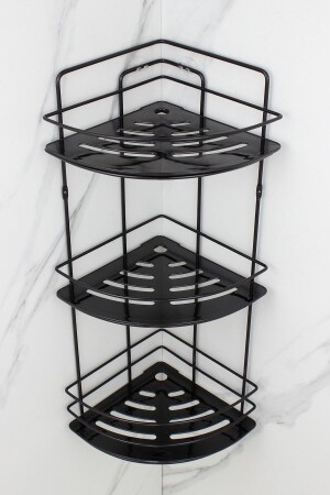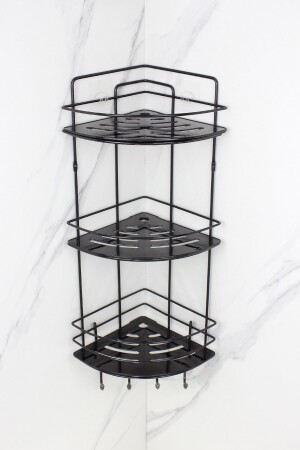 MNZ-لاستين أسود ثلاثي الأسلاك شامبو حامل ملصق حمام الزاوية منظمة غرف الاستحمام مع رف الكريستال