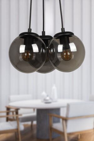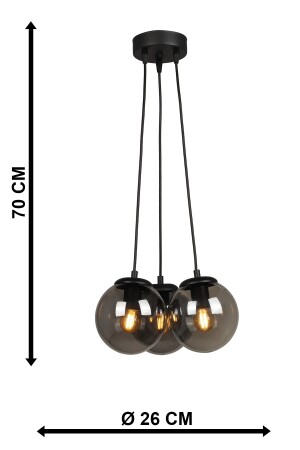Pare Model Modern Spor Siyah 4'lu Glop Füme Camlı Avize