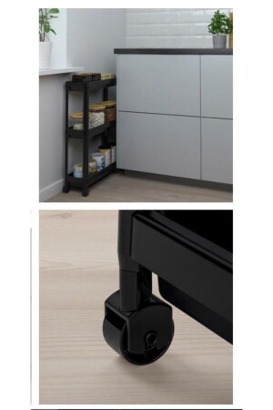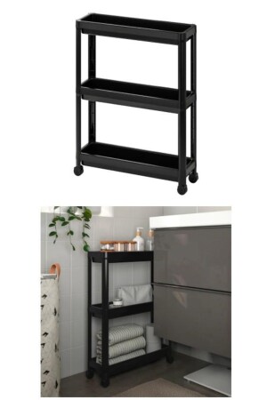 MNZ-متعدد الأغراض وحدة الرف 3 طبقات حمام المطبخ ذو عجلات نحيفة منظمة المنظمة Vesken أسود OMS3SLIMS