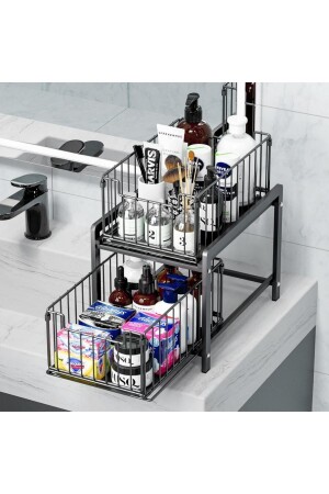 MNZ-متعدد الأغراض 2-رف ريل سلة منظمة حمام المطبخ تحت الحوض الخزانة المنظمة المكتب